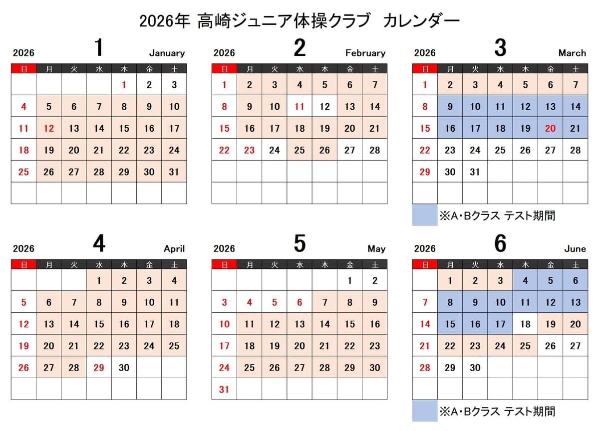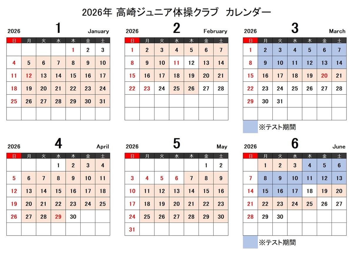 器械体操クラブカレンダー